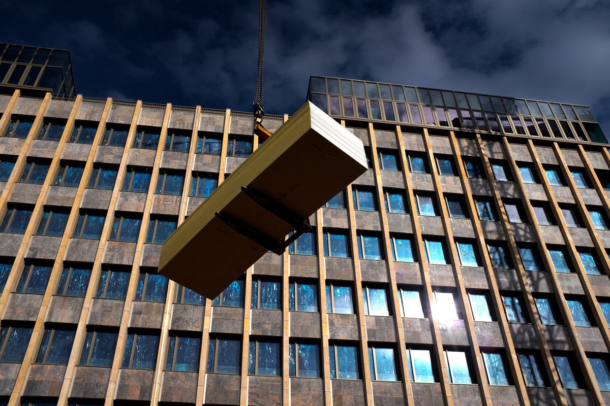 Promoteur immobilier APRC charpente beton nacelle ciel bleu